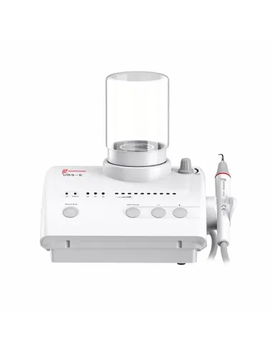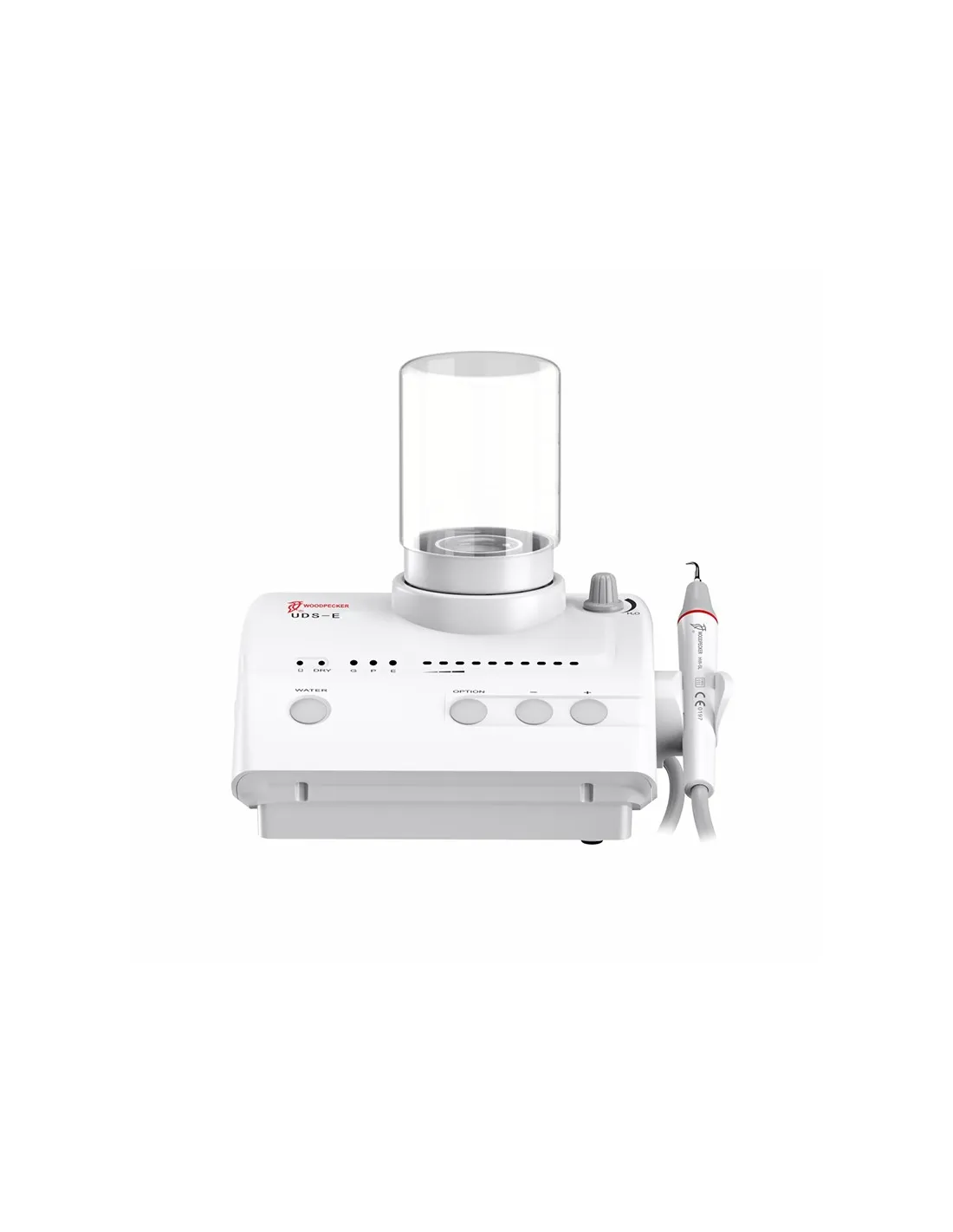 El UDS-E de Woodpecker es un aparato de ultrasonidos de sobremesa independiente que no precisa toma de agua puesto que tiene depósito de agua. Se trata de un aparato sencillo y atractivo cuyo nuevo diseño de la válvula permite un mejor control del agua.