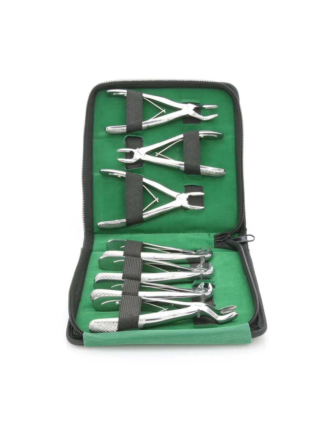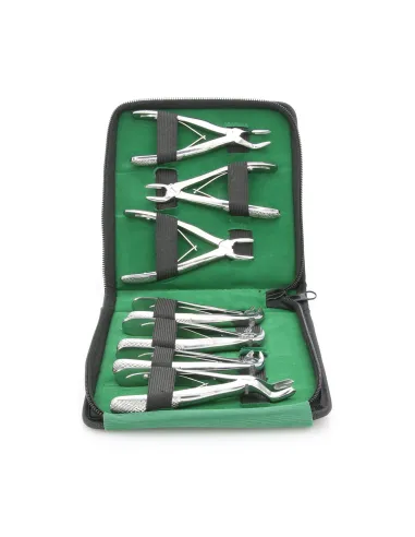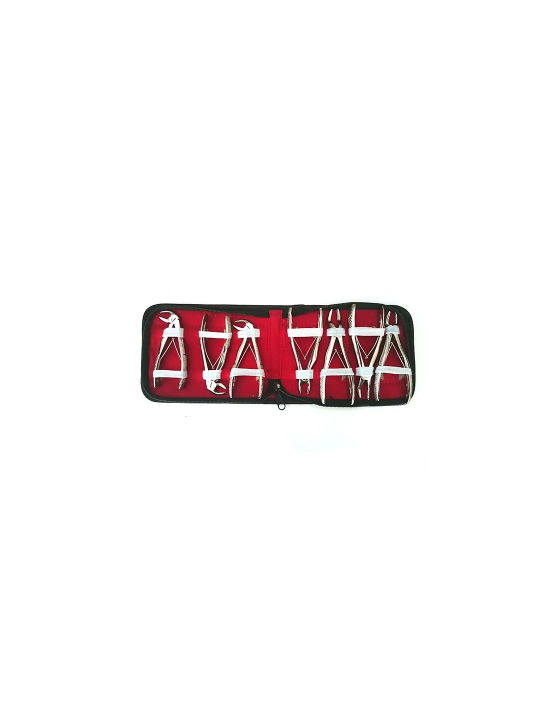 Set de 7 Fórceps de Masters de uso en Odontopediatría, que incluye 3 fórceps superiores y 4 fórceps inferiores.