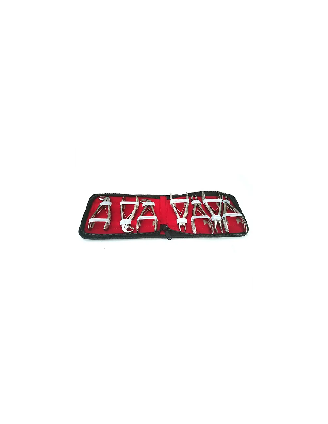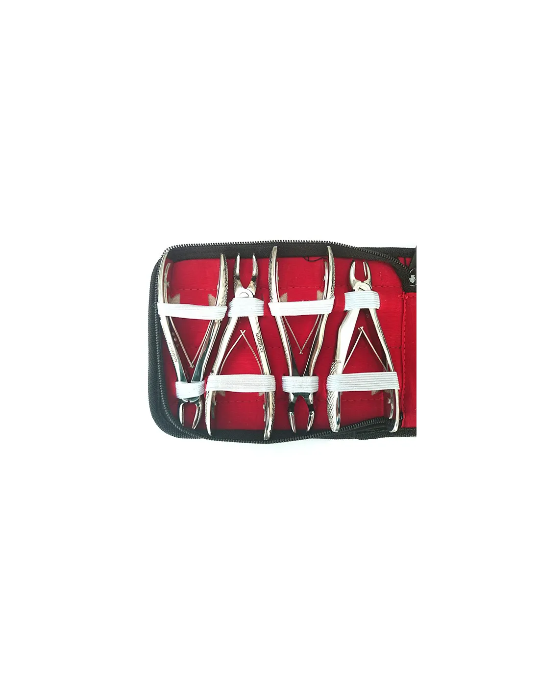- 4 fórceps superiores (1 para incisivos y caninos, 1 raíces, 1 premolares y 1 molares).