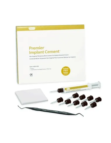 Premier Implant Cement de Premier es un cemento de resina temporal para la colocación de coronas sobre implantes. De apariencia y estética gingival gracias a su apariencia natural.