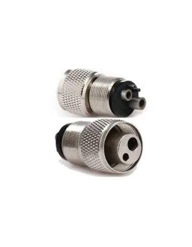 El adaptador Midwest/Borden de Bader permite acoplar turbinas o micromotores con conexión Borden (2 salidas) a mangueras con conexión Midwest (4 salidas).