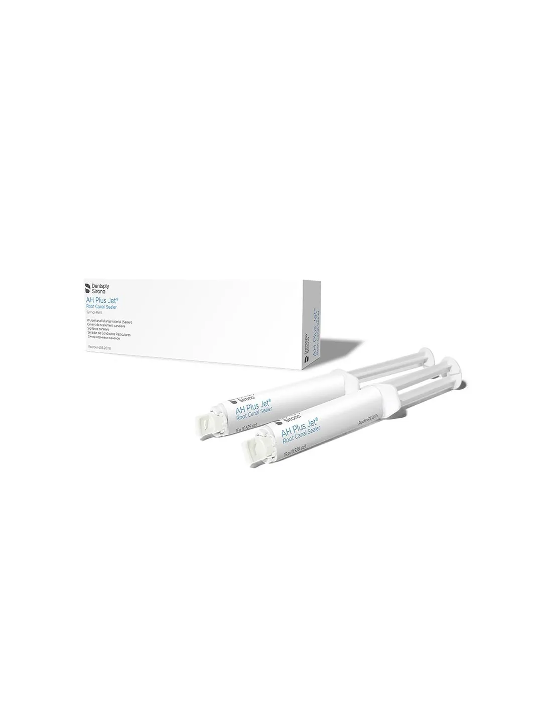 AH Plus Jet Reposición de Dentsply se presenta en 2 jerigan de automezcla de 15ml.