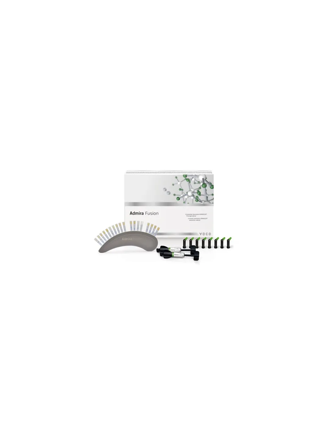 El composite Admira Fusion es compatible con todos los adhesivos convencionales. El Set + Bond Cápsulas de Admira Fusion contiene 75 cápsulas de 3g (15 de cada color: A2, A3, GA3.25, A3.5, Admira Fusion X-tra), colorímetro + Futurabond U monodosis 20 u y accesorios.