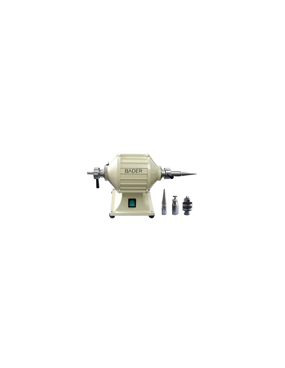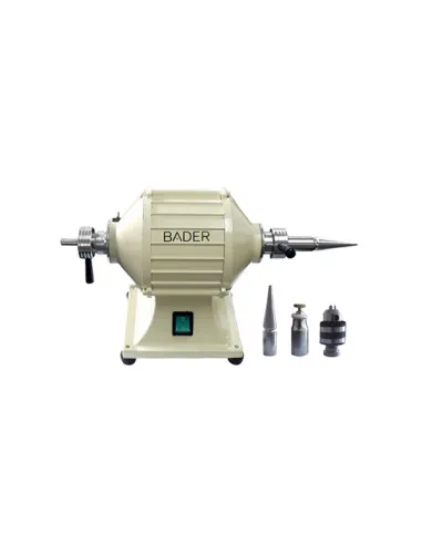 Esta electropulidora de BADER contiene un kit de accesorios compuesto por: cono izquierdo, cono derecho, portamuelas izquierda y mandril portacepillos montados.