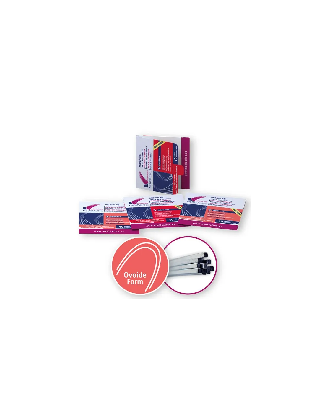 Existen 12 modelos diferentes (6 tamaños para la arcada superior, y 6 tamaños para la arcada inferior). Los arcos de Medicaline se presentan en envases de 10u.