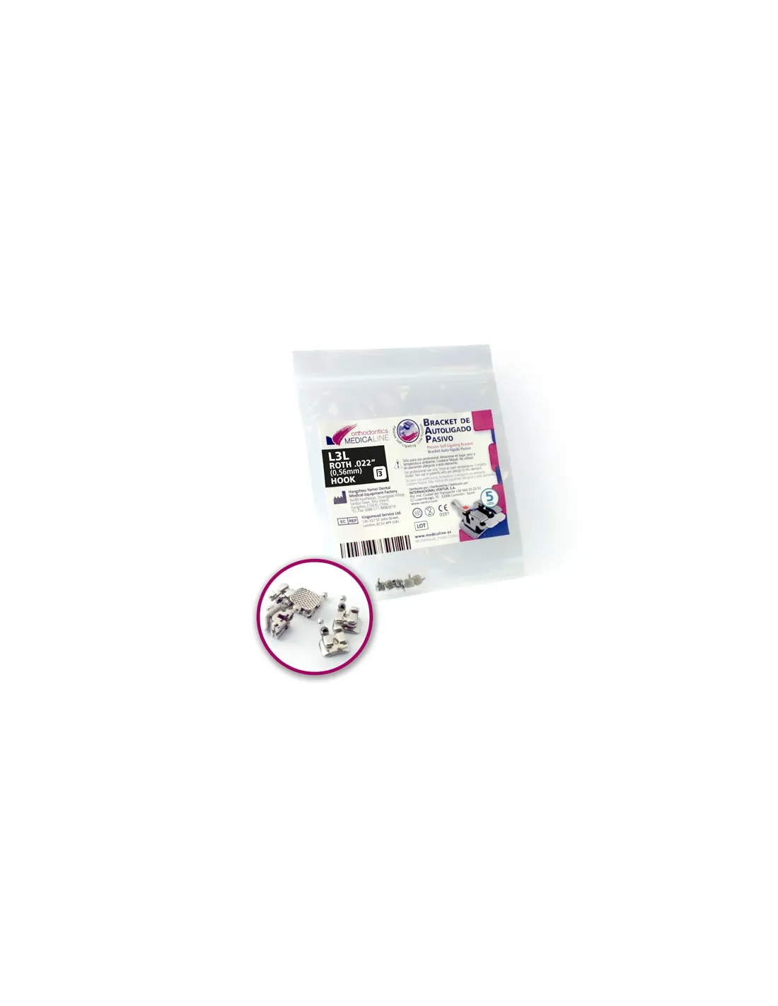 El envase es una reposición de 5u de Opera Brackets autoligados metálicos Roth .022, a elegir la posición.