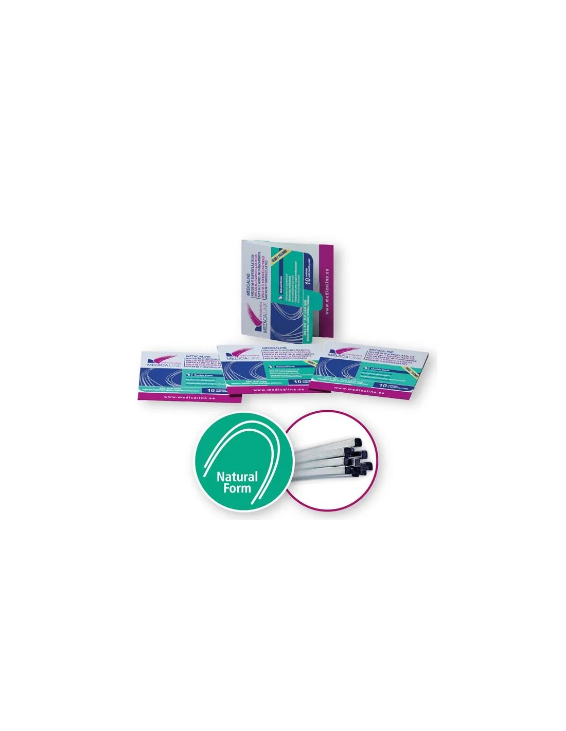 Existen 10 modelos diferentes (5 tamaños para la arcada superior, y 5 tamaños para la arcada inferior). Los arcos Ni-Ti elásticos de Medicaline se presentan en envases de 10u.