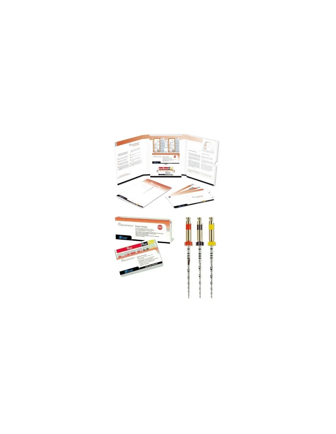 Reciproc System Kit 25mm de Zipperer es un kit de inicio de uso en endodoncia compuesto por un blister de 6 limas R25, un blister de 3 limas R40 y un blister de 3 limas R50.
