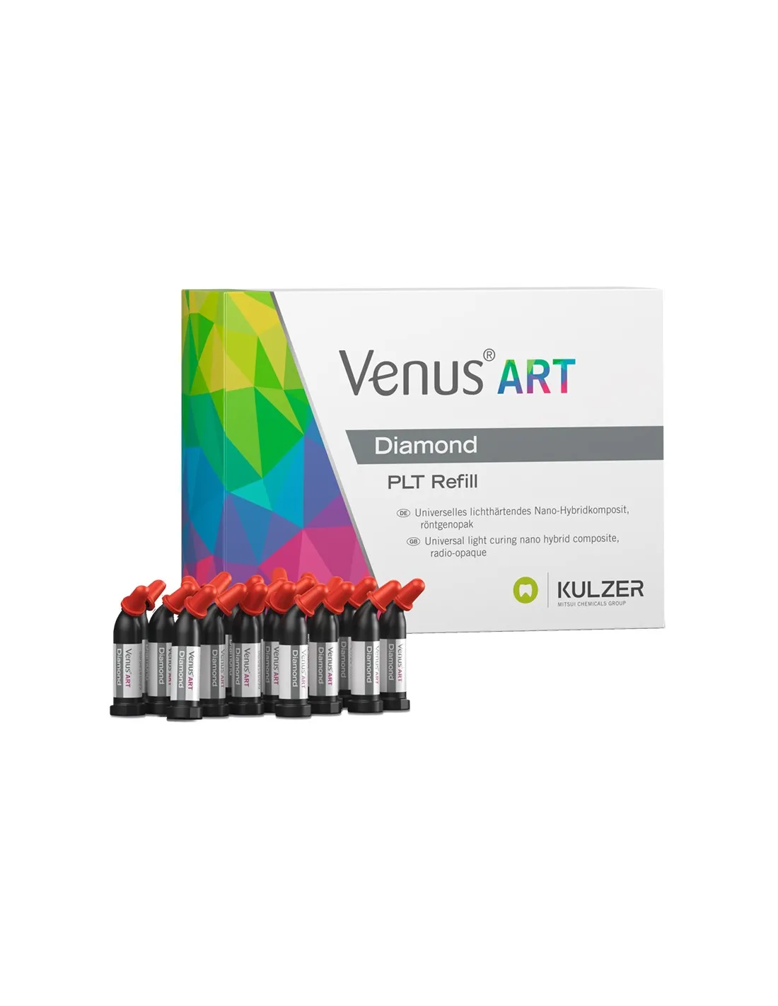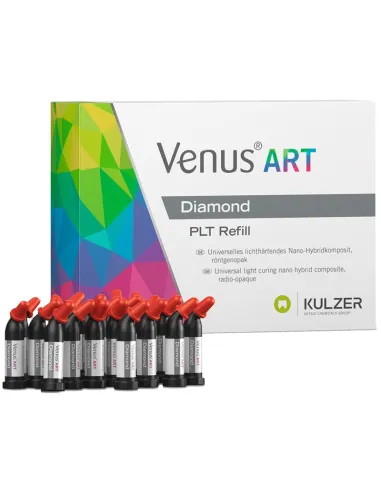 Venus Art Diamond es un nanocomposite universal fotopolimerizable de base híbrida con partículas finísimas. Consistencia firme y con mínima adherencia al instrumento.