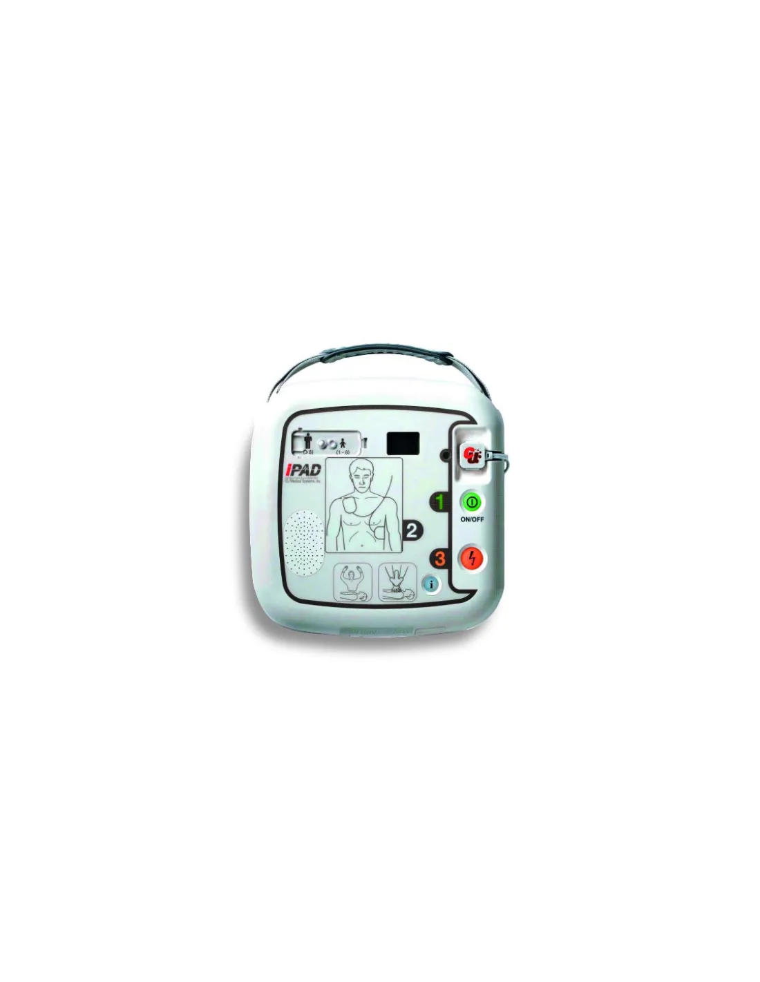 IPAD CU-SP1 de Technoflux, es un desfibrilador semiautomático para usuarios con un mínimo de entrenamiento. Sus parches tienen la posibilidad de ser usados tanto en adultos como en niños. Indicador de estado en pantalla con mensajes de voz detallados e indicadores luminosos. Con sistema de detección de CPR inteligente. Y aviso al usuario si detecta proceso de reanimación.