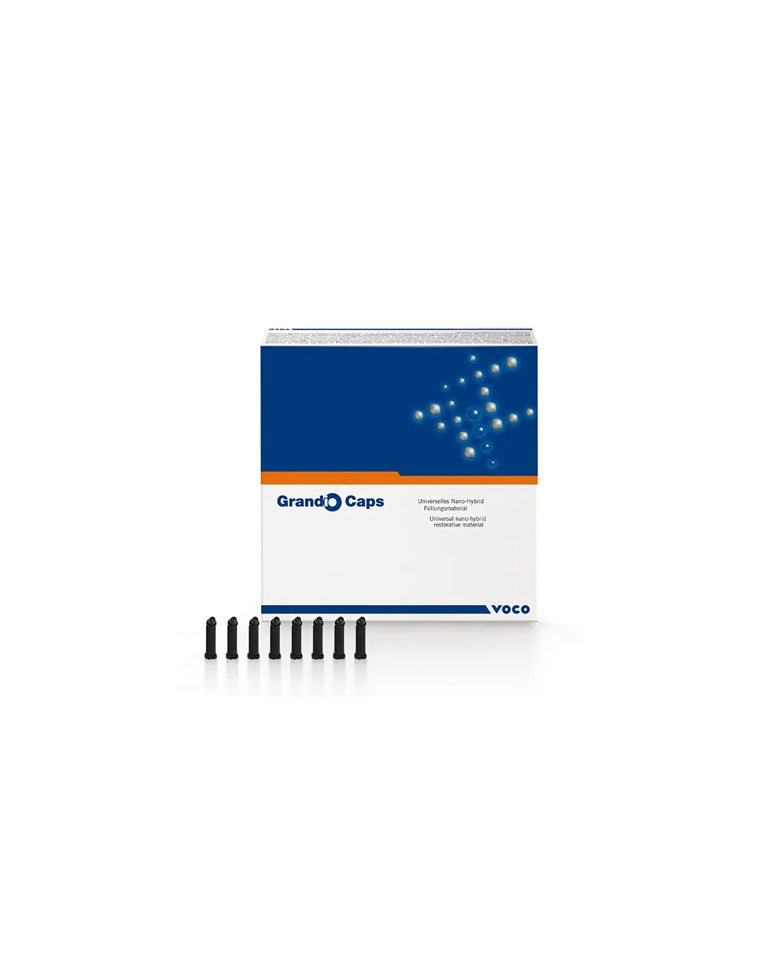 El envase contiene 20 cápsulas de 0,25grs de composite Grandio de Voco.