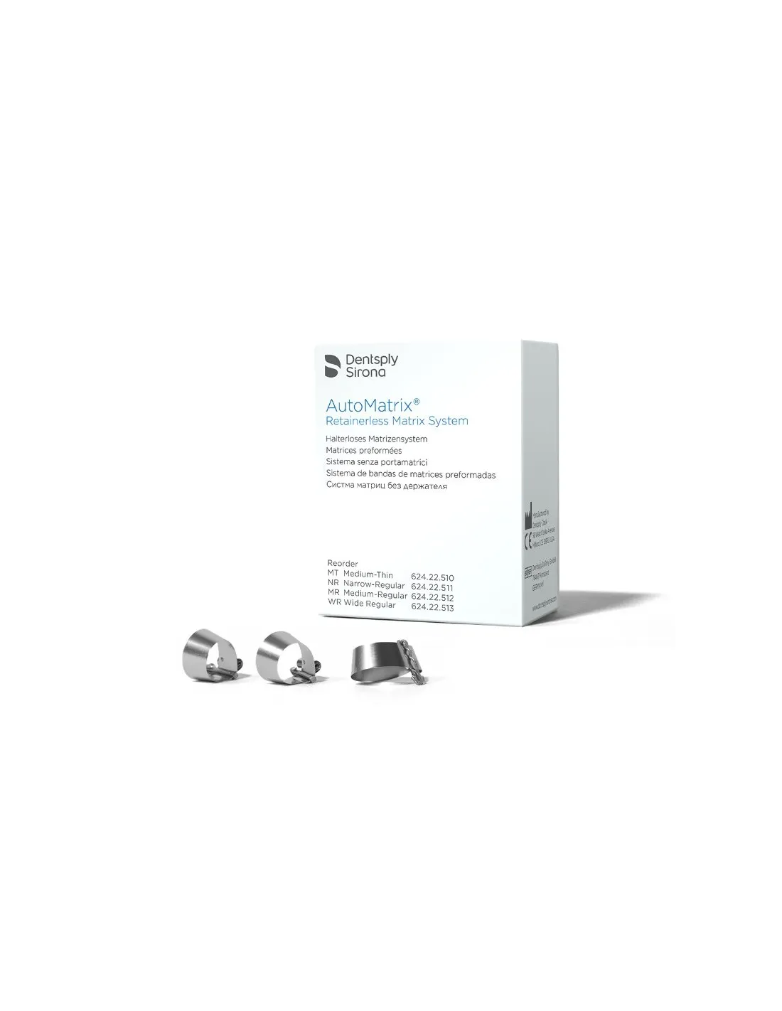 Su variado surtido consistente en cuatro tipos distintos de matrices preformadas y contorneadas de diferentes tamaños proporciona una importante capacidad de elección al profesional para cada caso clínico. Disponibles: