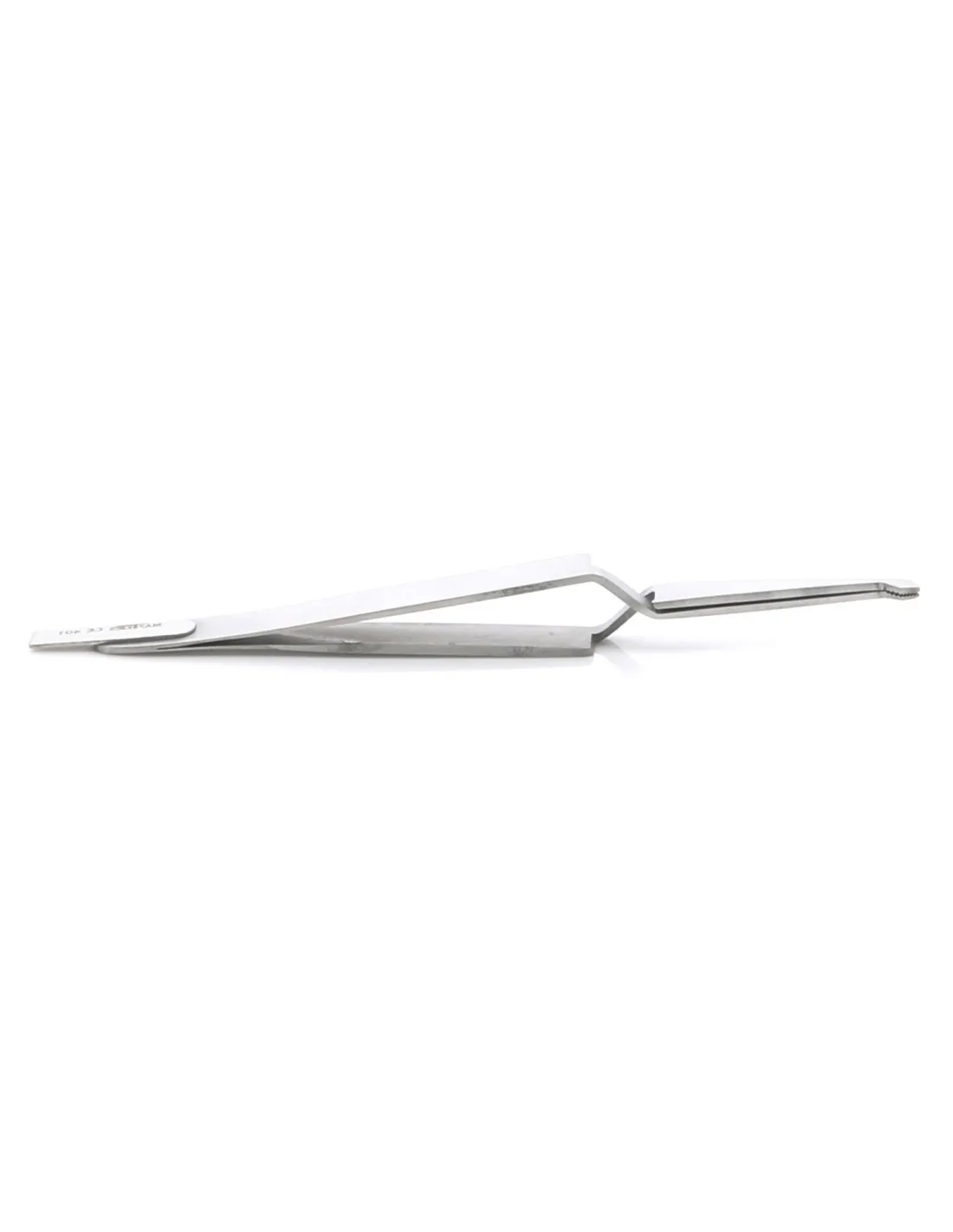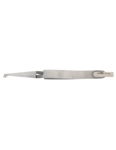 Instrumento esterilizable de acero inoxidable alemán, con una parte activa para colocar los brackets y un alineador en la parte trasera para posicionarlos de forma exacta.
