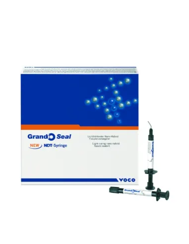 Grandio Seal de VOCO es un sellador de fisuras fotopolimerizable y nano-híbrido. Indicado para el sellado o restauración de surcos y fisuras. Revestimiento de superficies de esmalte dañadas. Para el cubrimiento de áreas de desarrollo de caries durante el tratamiento ortodóntico. Y también para el sellado de restauraciones de composite, capa protectora contra humedad.