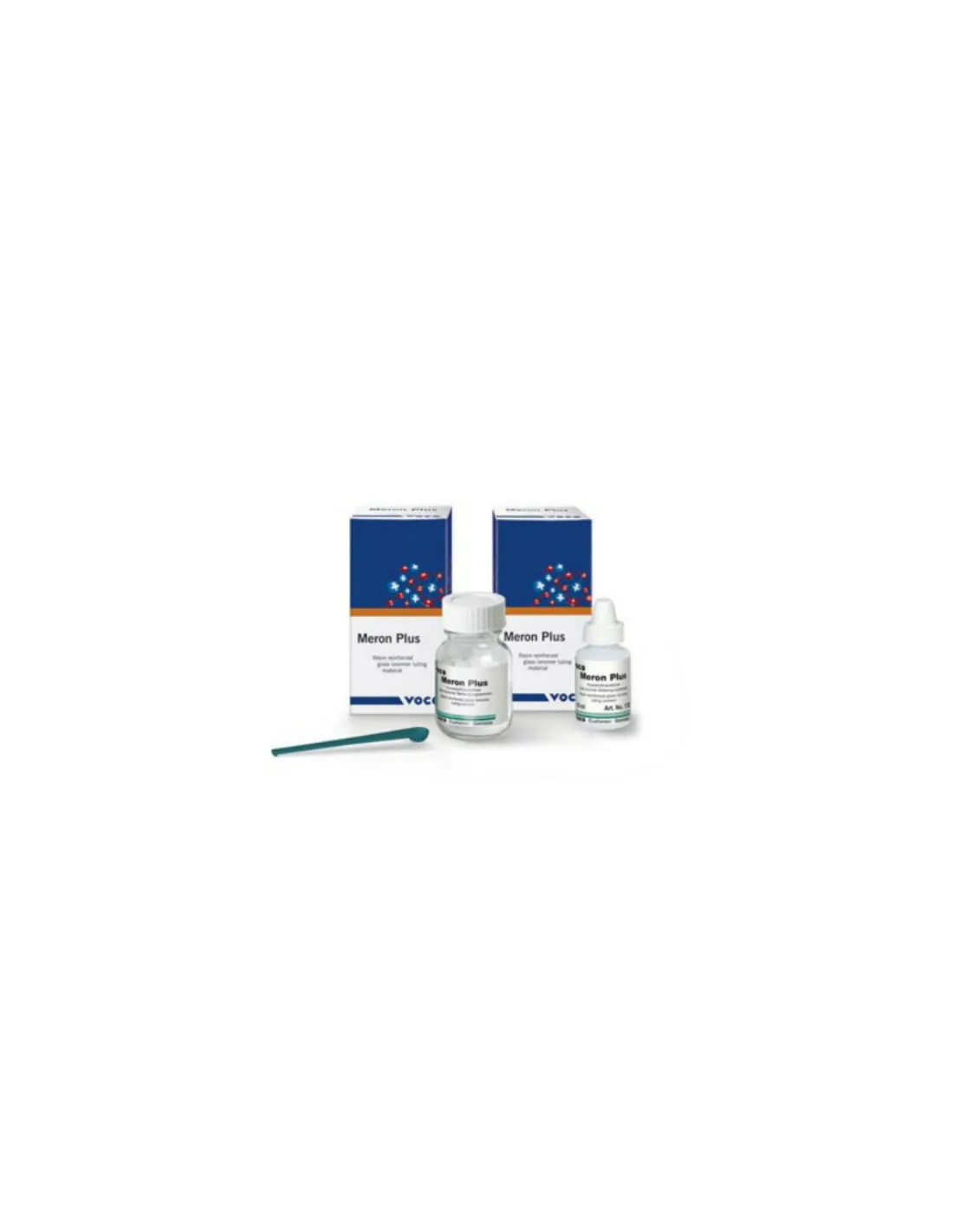 Meron Plus de Voco es un cemento de fijación de ionómero de vidrio reforzado con resina. Indicado para la fijación de coronas de porcelana fundida sobre metal, puentes en tejido dental duro y muñones construidos con amalgama, composite o cementos ionómeros de vidrio. También para inlays, onlays, coronas y puentes de metal, postes, coronas construidas en alúmina puro o con núcleos de circonio y dispositivos de ortodoncia.
