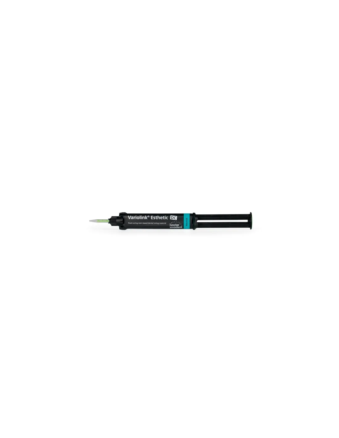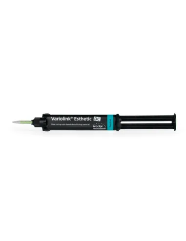 El envase de Variolink Esthetic DC de Vivadent contiene: 1 jeringa de reposición de 9g a elegir tono entre los disponibles.