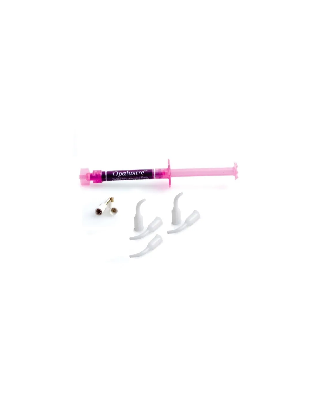 Opalustre de Ultradent es una pasta viscosa de ácido clorhídrico al 6,6% que contiene micropartículas de carburo de silicio en una base hidrosoluble.