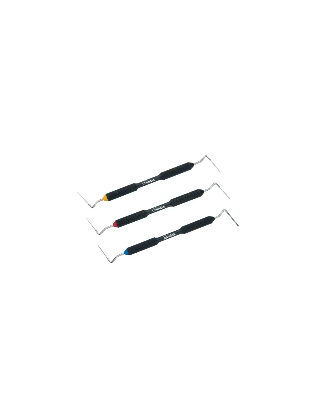 El extremo de NiTi codificado por colores es excelente para la finalización de los procedimientos de condensación, incluso en los canales con grandes curvas. Ambos extremos condensan y controlan la Gutta-Percha.