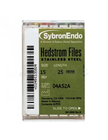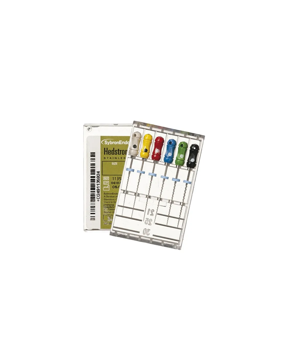 Las Limas tipo H de Endodoncia de mano Hedstroem de Kerr Sybroendo están fabricadas en acero inoxidable.