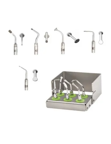 Los kits de insertos para Piezomed contienen diferentes insertos para cirugía ósea, periodontología y extracción, endodoncia retrógrada y también para elevación del seno maxilar lateral (Sinus Lift).