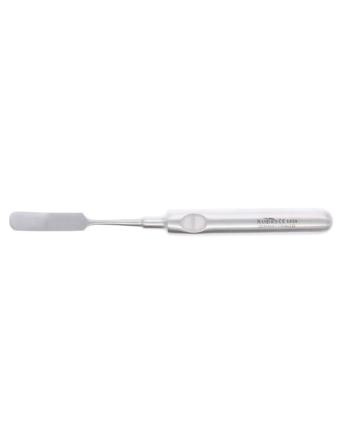 El Retractor de Apicectomía de Masters posee una parte activa redondeada que forma un ángulo de 45º, y otro extremo con mango para sujección.