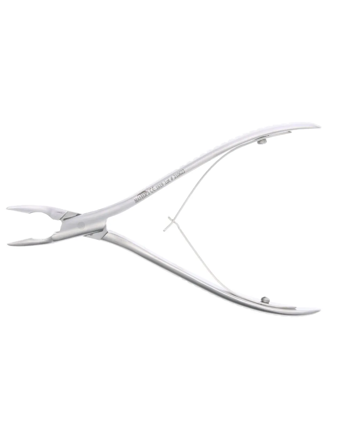La Pinza gubia de Masters es un instrumento de dos ramas articulados con sus extremos activos cóncavos y acabados en micro puntas de 3mm.