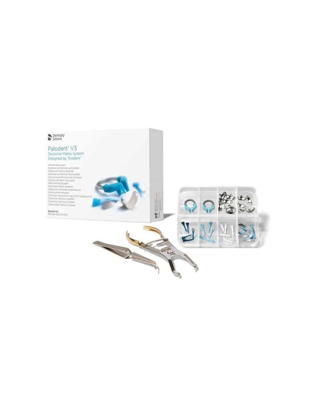 El Starter Kit Palodent V3 de Dentsply contiene: 20 matrices +15 cuñas + Accesorios.