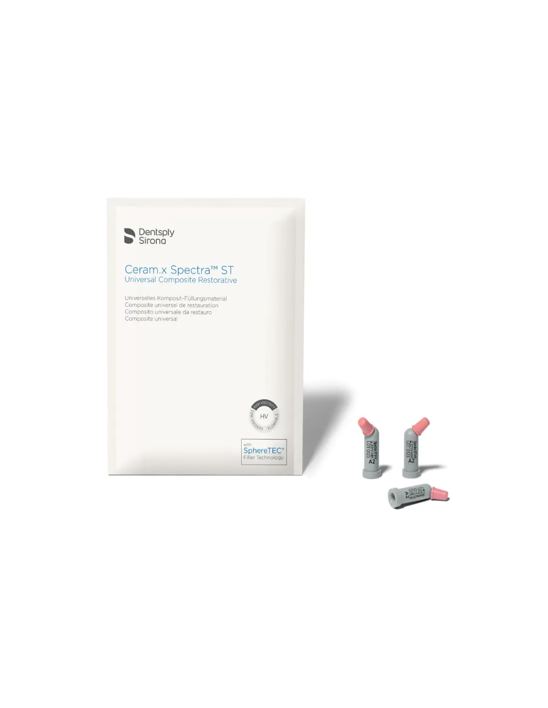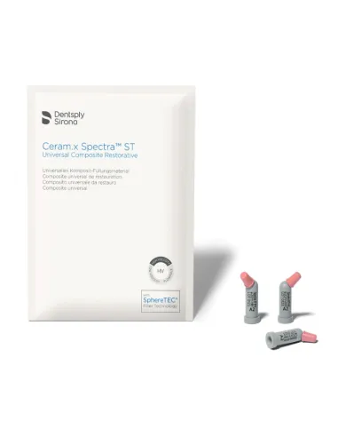 El composite Ceram X Universal ahora es el nuevo Ceram X Spectra ST de Dentsply un composite universal, fotopolimerizable, basado en la nueva e innovadora tecnología de relleno SphereTec. Esta nueva tecnología contiene rellenos esféricos que proporcionan una excelentes condiciones de manejo, adaptabilidad, modelado y estética.