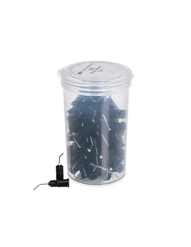 De cuerpo de plástico negro con aguja metálica curvada de calibre 22GA, Ø 0,70mm.