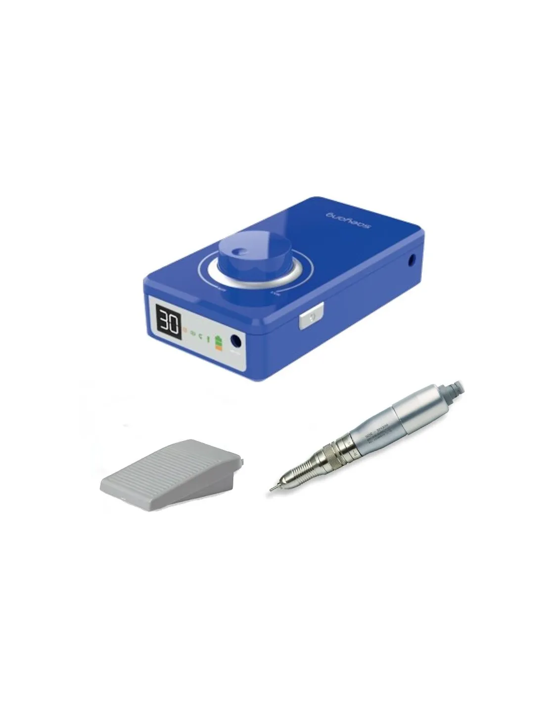 La Unidad Portátil Marathon K38 de Saeyang es un equipo formado por un micromotor de escobillas portátil modelo K38 con pedal.