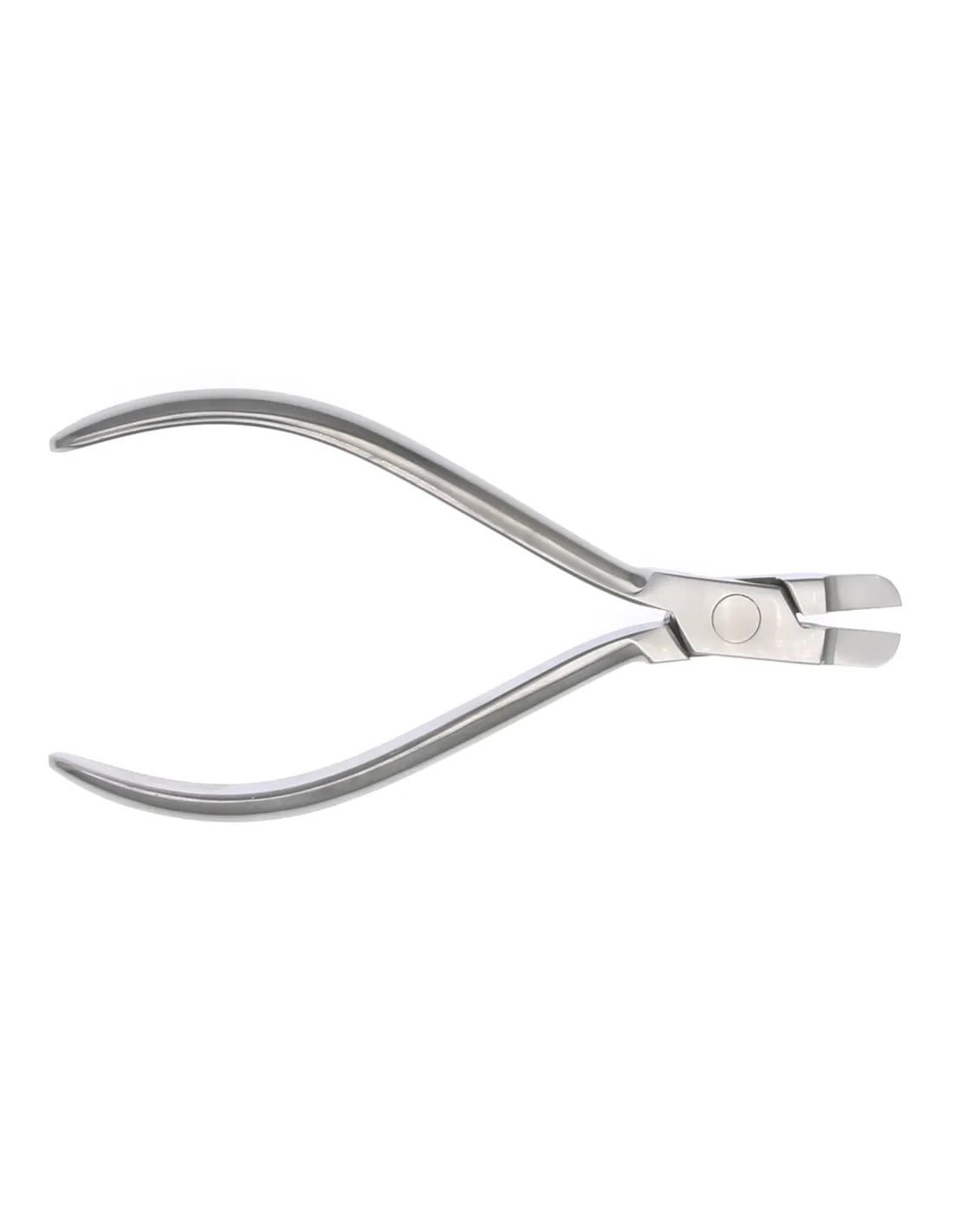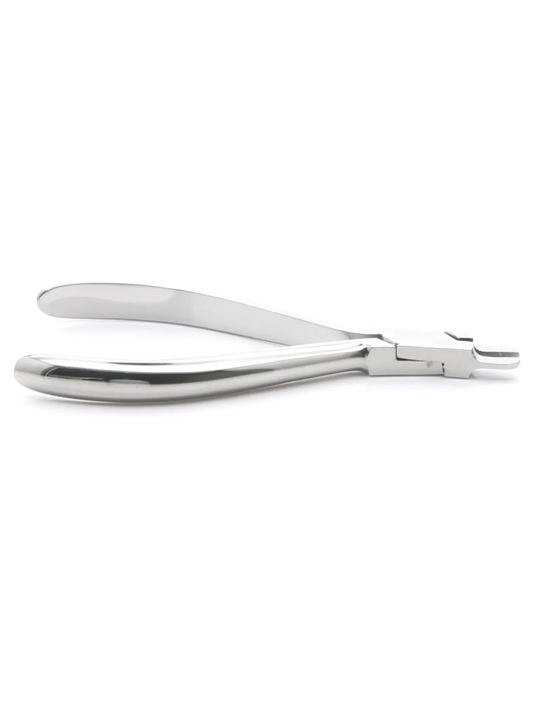 El Alicate para formar arcos rectangulares tiene las puntas proyectadas para que permanezcan paralelas a la apertura y así impedir el aplastamiento.