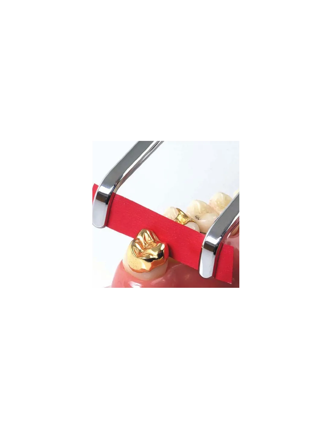 Especialmente para el uso con el folio BK 35 por su tamaño y anchura ( 8 mm ). También se puede utilizar con otros folios de la gama Arti-Fol metallic ( con color por un lado y metal en otro ) como el BK 31 ( mucho más ancho: 22mm ) . La razón por la que debe de ser un folio metálico ( shimstock con color ) es porque es mucho más resistente para realizar el ajuste de coronas y puentes para que no se rompa.