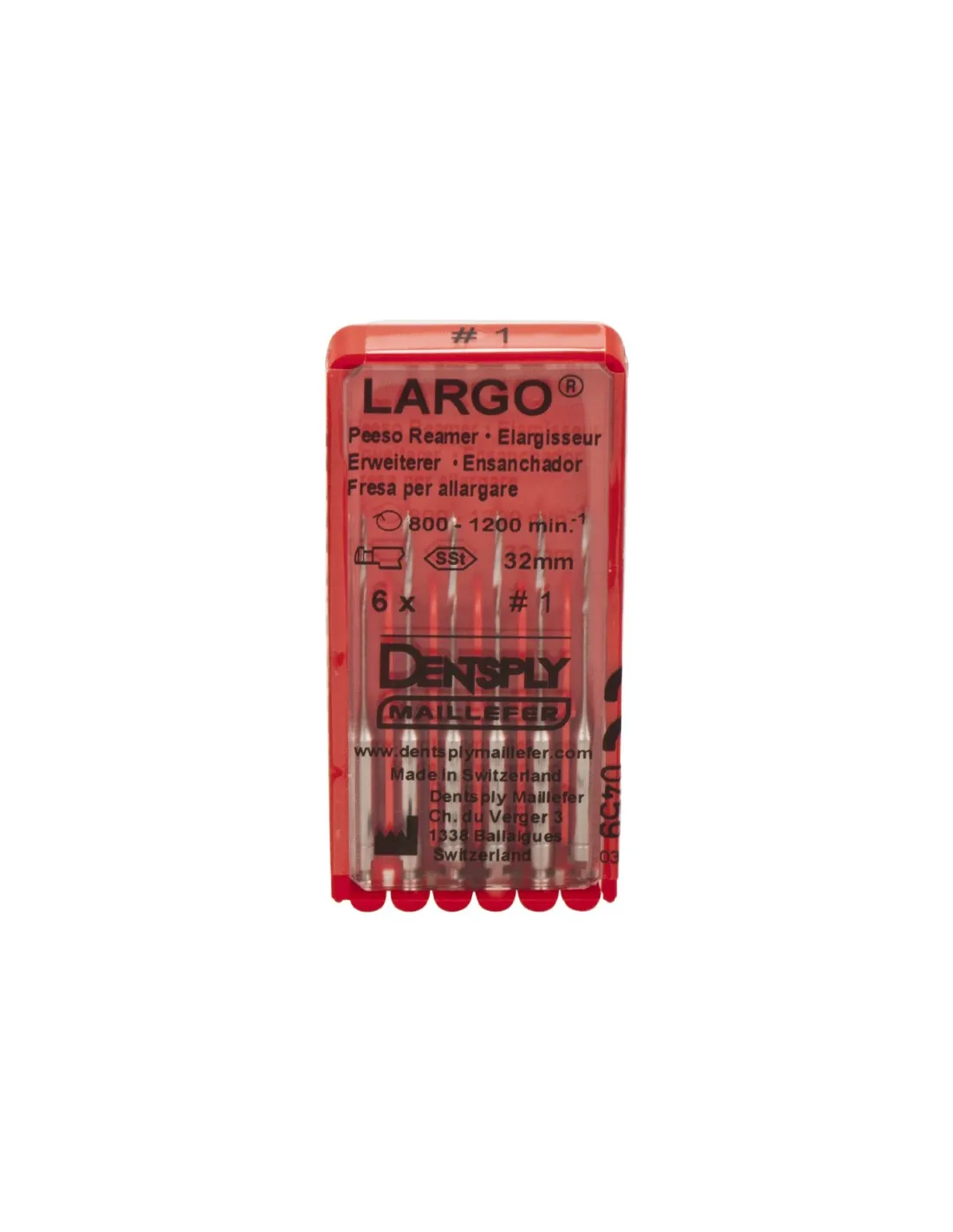El envase de Fresas Peeso (Largo) Ensanchador de Dentsply Maillefer contiene 6 unidades.