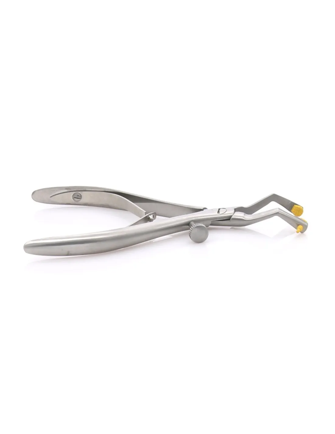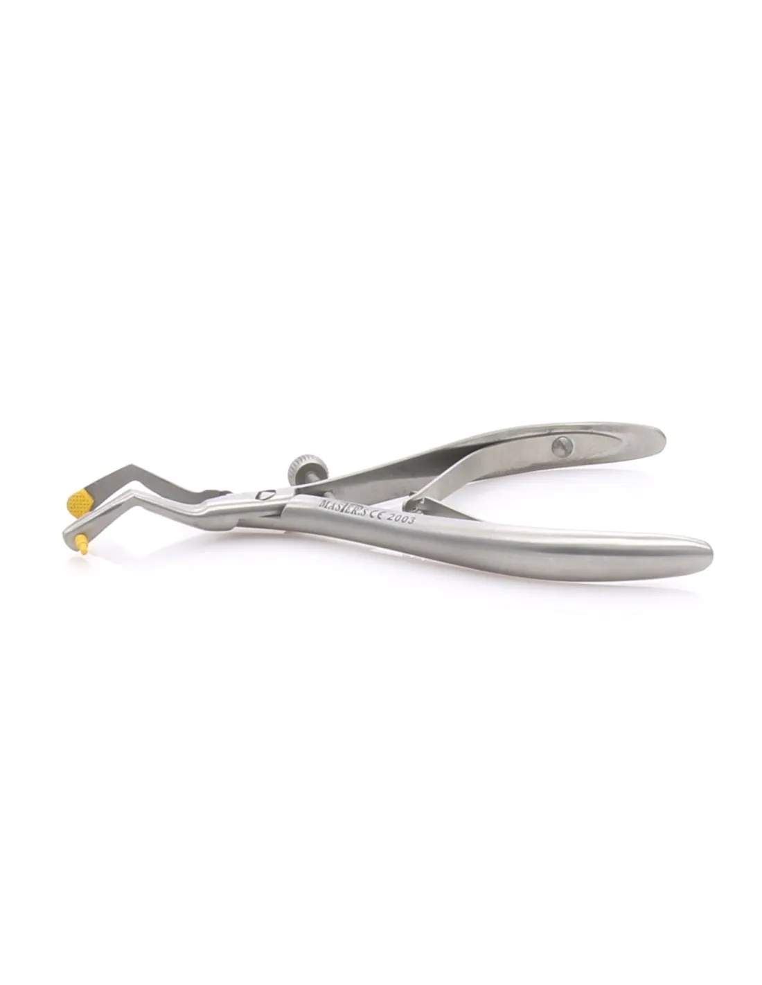 El instrumento quita coronas de Masters está diseñado para remover coronas de forma segura y sin dañar gracias a su parte activa curvada y con topes de goma en sus puntas.