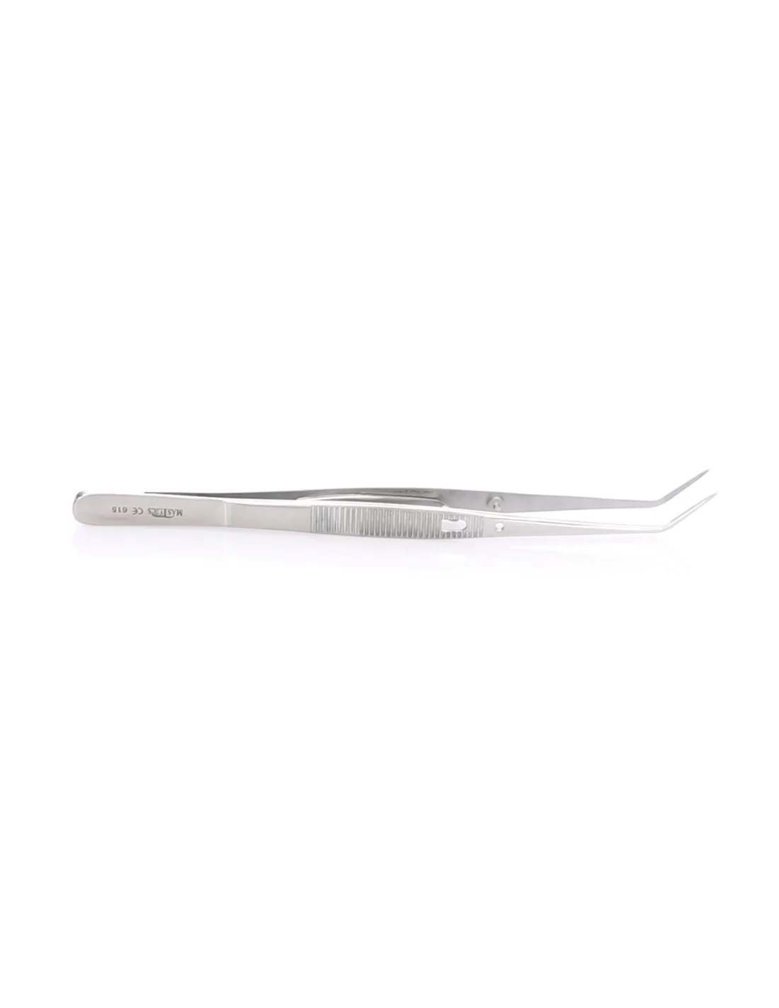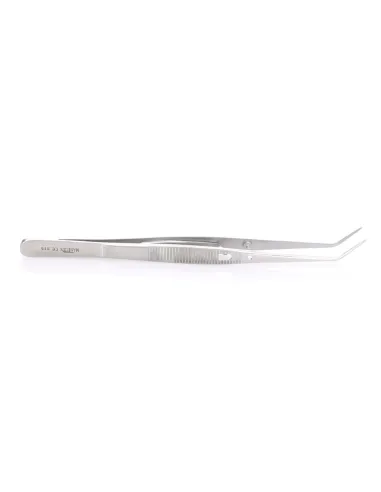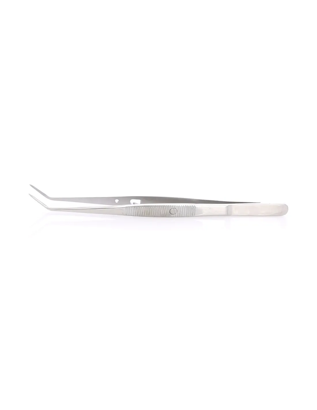 Esta pinza posee una parte activa con estrías en su cara interna, así como un mango también estriado para una sujeción firme.
