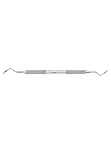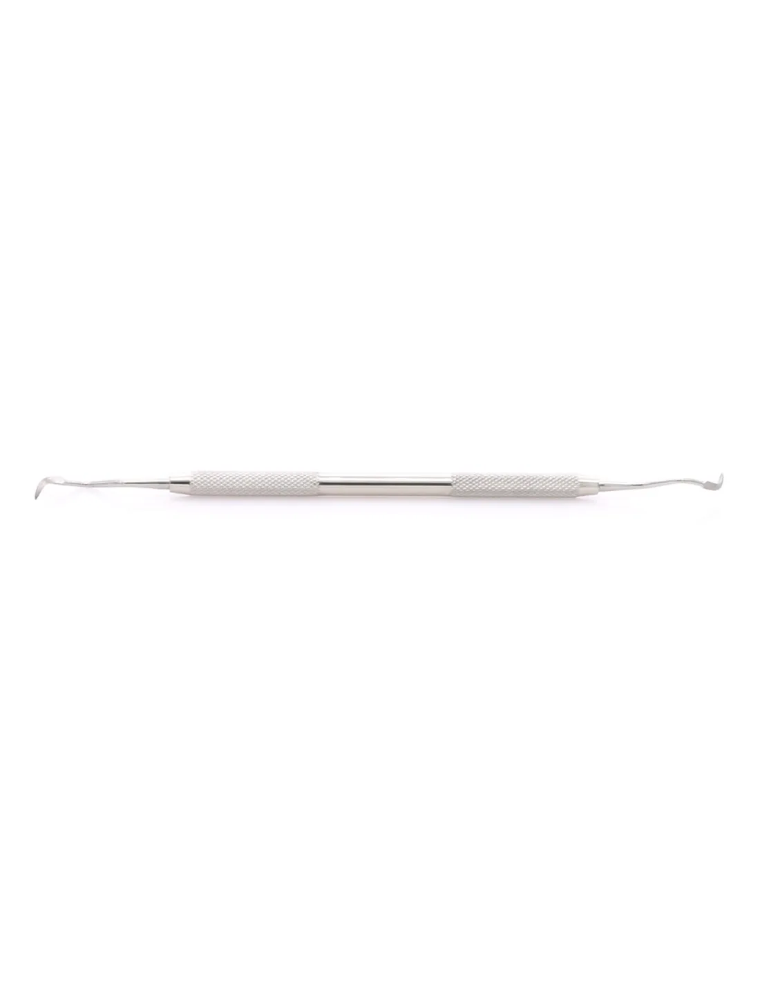 Este raspador de sarro posee dos partes activas en forma de pala acabada en punta.