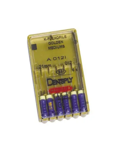 Las limas K Golden Medium de Maillefer de 21mm. son limas fabricadas en números ISO intermedios que completan la gama standar de Limas K Flexofile, ya que facilitan la transición entre números con limas de menor grosor.