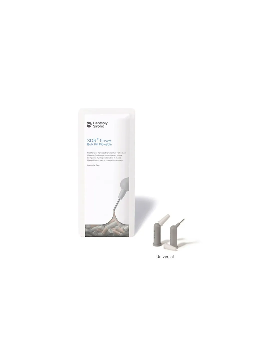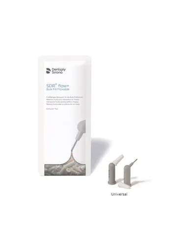 SDR Flow+ de Dentsply es la nueva generación de la conocida tecnología "bulk fill" SDR. Ahora es un material más fluido de obturación masiva con un campo más amplio de indicaciones y tonos, así como una mayor resistencia al desgaste y mayor radiopacidad.