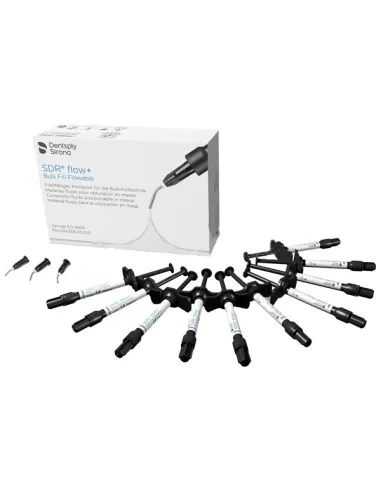 SDR Flow+Bulk Fill Flowable de Dentsply es la nueva generación de la conocida tecnología "bulk fill" SDR. Ahora es un material más fluido de obturación masiva con un campo más amplio de indicaciones y tonos, así como una mayor resistencia al desgaste y mayor radiopacidad.
