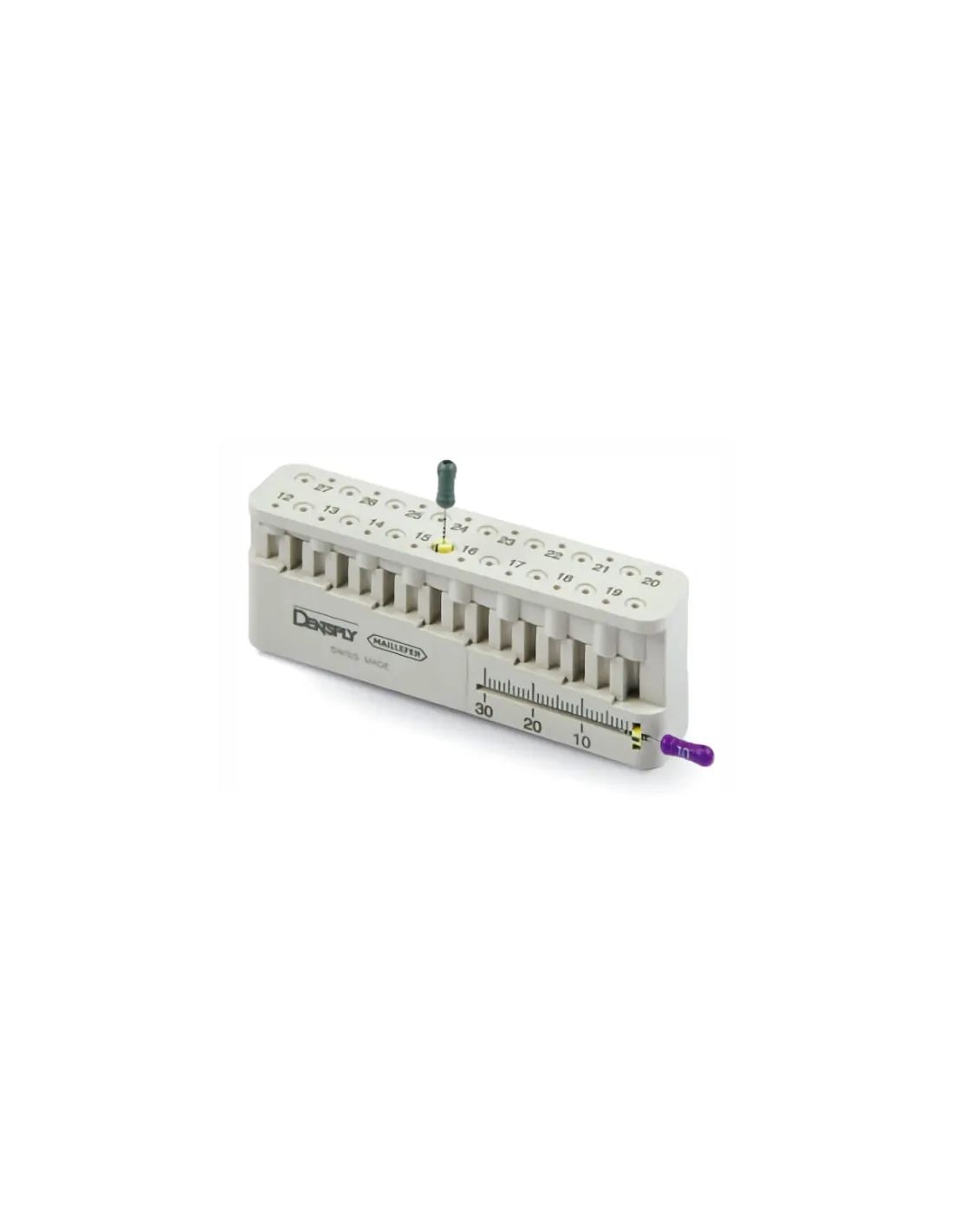 Mini Endo M-Bloc de Maillefer es un instrumento con un sistema de medición rápida y que se utiliza para conoce la longitud de instrumentos endodónticos, tales como limas, puntas de papel y gutaperchas.