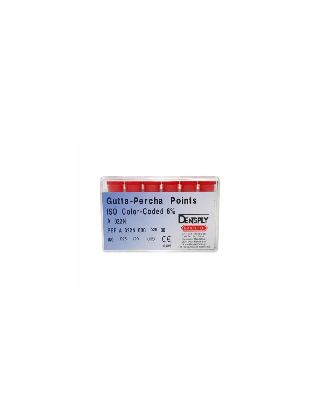 Cada envase de Puntas de Gutta-Percha .06 de Maillefer contiene: 6 tubos de 20 unidades, total 120 uds.