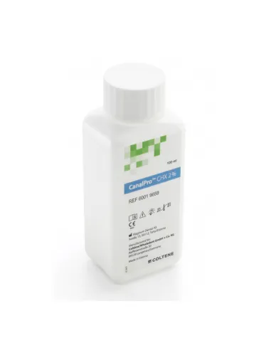 CanalPro CHX 2% de Coltène es una solución para endodoncia de digluconato de clorhexidina al 2%. Está indicada como irrigante adicional y durante revisiones. Resulta muy efectiva contra la E. Faecalis y hongos. Además, suele ser utilizada para el desbridamiento químico durante el proceso de preparación del canal.