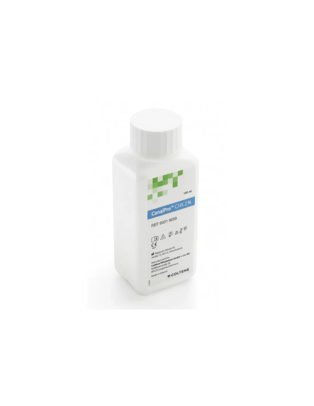CanalPro CHX 2% de Coltène está disponible en botella cuadrada de 100ml.