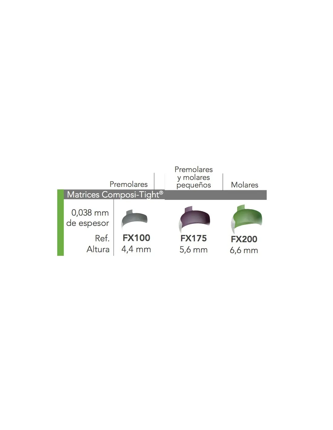 Las matrices son preformadas y extrasuaves. De 0,038mm de espesor en acero inoxidable ultrafino.