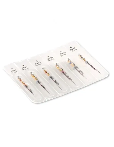 - 6 limas: 25 mm 20/.04, 25/.04, 30/.04, 40/.04, 20/.06, 19 mm 25/.08.