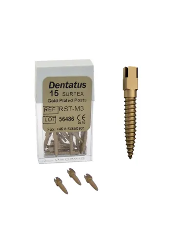Los pernos originales Classic RST-M de Dentatus con tratamiento de superficie Surtex, ofrecen un anclaje dental fiable y sencillo con una excelente retención para la reconstrucción de perno y muñón. También son especialmente adecuados para restauraciones temporales.