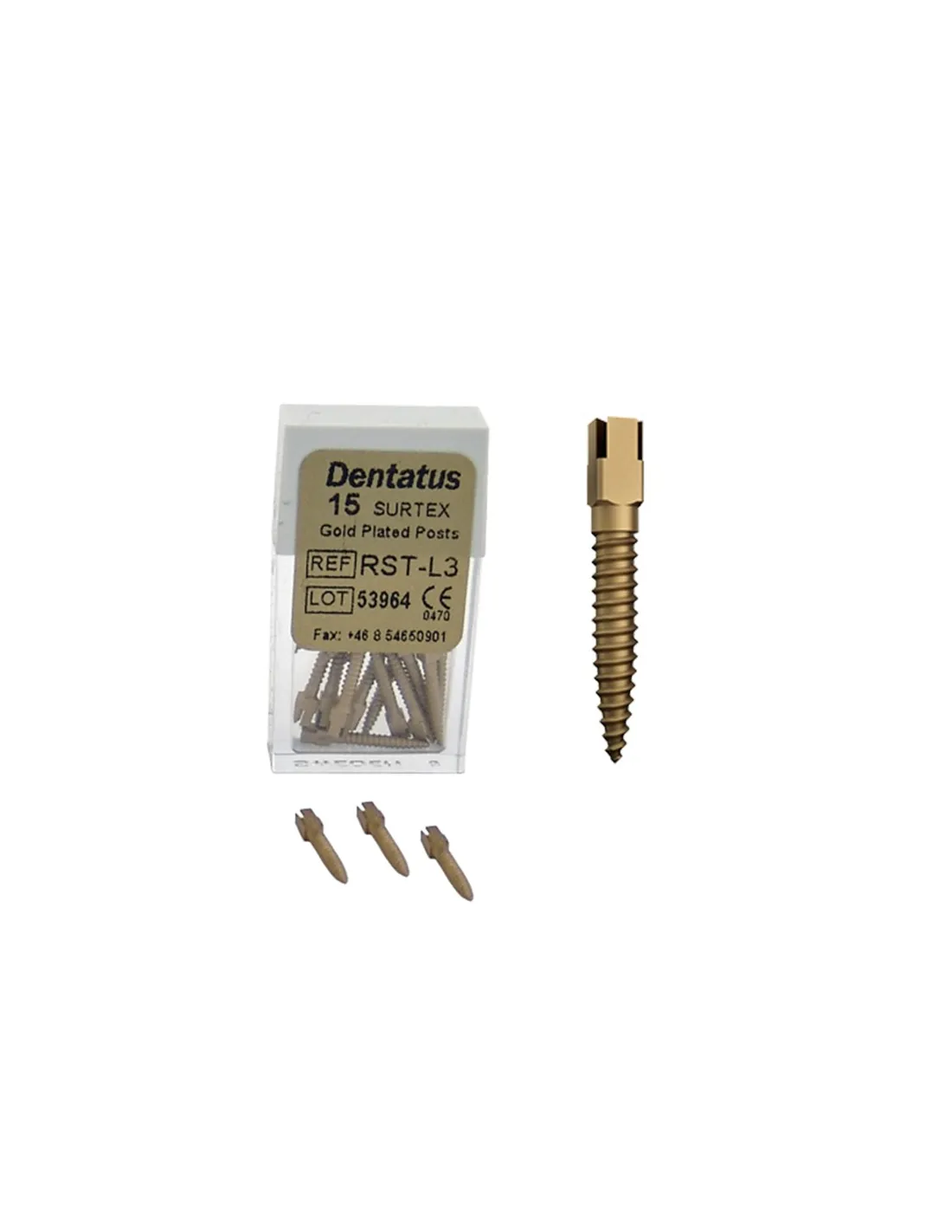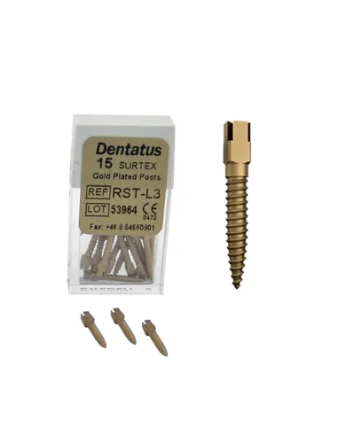 Los pernos originales Classic RST-L de Dentatus con tratamiento de superficie Surtex, ofrecen un anclaje dental fiable y sencillo con una excelente retención para la reconstrucción de perno y muñón. También son especialmente adecuados para restauraciones temporales.