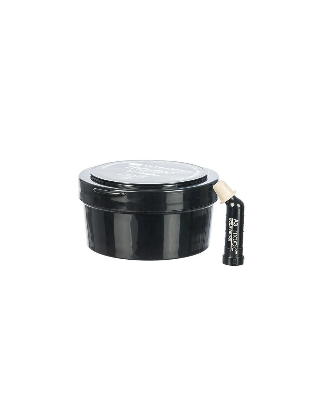 Mosaic de Ultradent es un composite Universal fotopolimerizable, de base Bis-GMA. Nanohíbrido con vidrio cerámico de circonia-sílice y sílice de 20 nanómetros; con carga del relleno de 68% por volumen para los tonos dentina y 56% para los tonos esmalte. Gracias a esta fórmula consigue restauraciones de gran calidad estética. Además, su perfecta combinación entre rendimiento y alta estética, garantiza unas restauraciones duraderas.