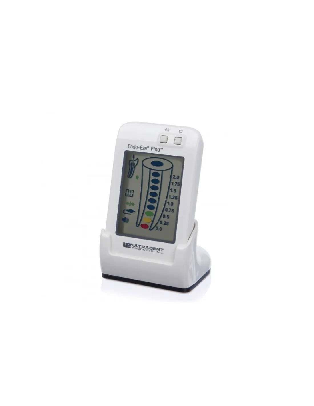 Endo-Eze FIND de Ultradent es un dispositivo electrónico portátil para la localización del ápice. Indicado para aquellos pacientes que necesitan someterse a tratamiento de conducto radicular, y a su vez requieren una determinación muy precisa de la posición de la lima dental en el canal radicular en relación con el ápice de la raíz.