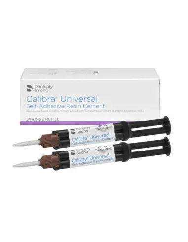 Calibra Universal de Dentsply De Trey es un cemento de resina estético auto-adhesivo. Gracias a sus dos componentes combina una excelente estética con un adhesivo autograbado. Al ser principalmente hidrofóbico, minimiza la absorción de agua post-curado, solubilidad y expansión higroscópica.